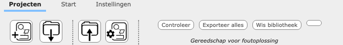 At the top there are toolbars to control the tools: Projects, Home and Settings.